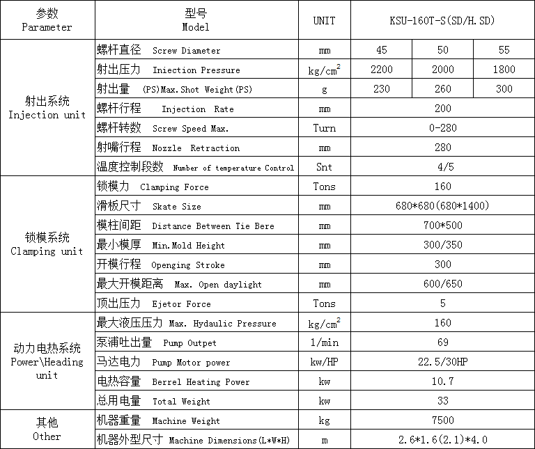產(chǎn)品名稱:?jiǎn)坞p滑板注塑機(jī)系列 KSU-160T-H.SD
